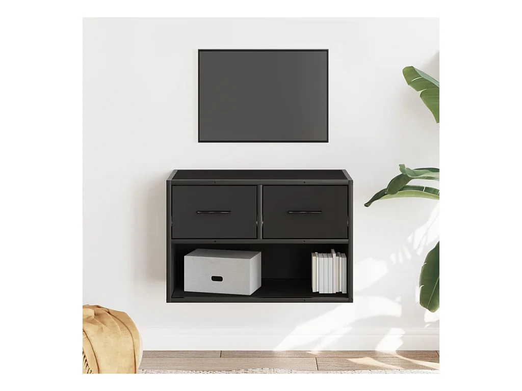 Mueble de TV | Mueble de salón metal y madera de ingeniería negro 80x31x39,5 cm