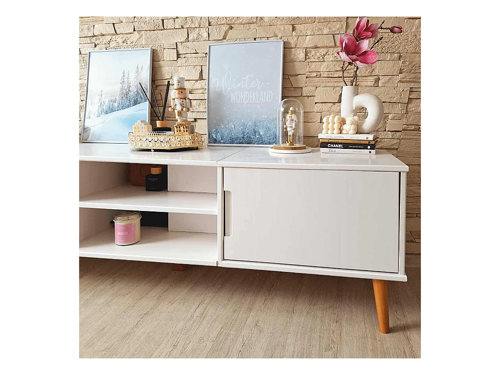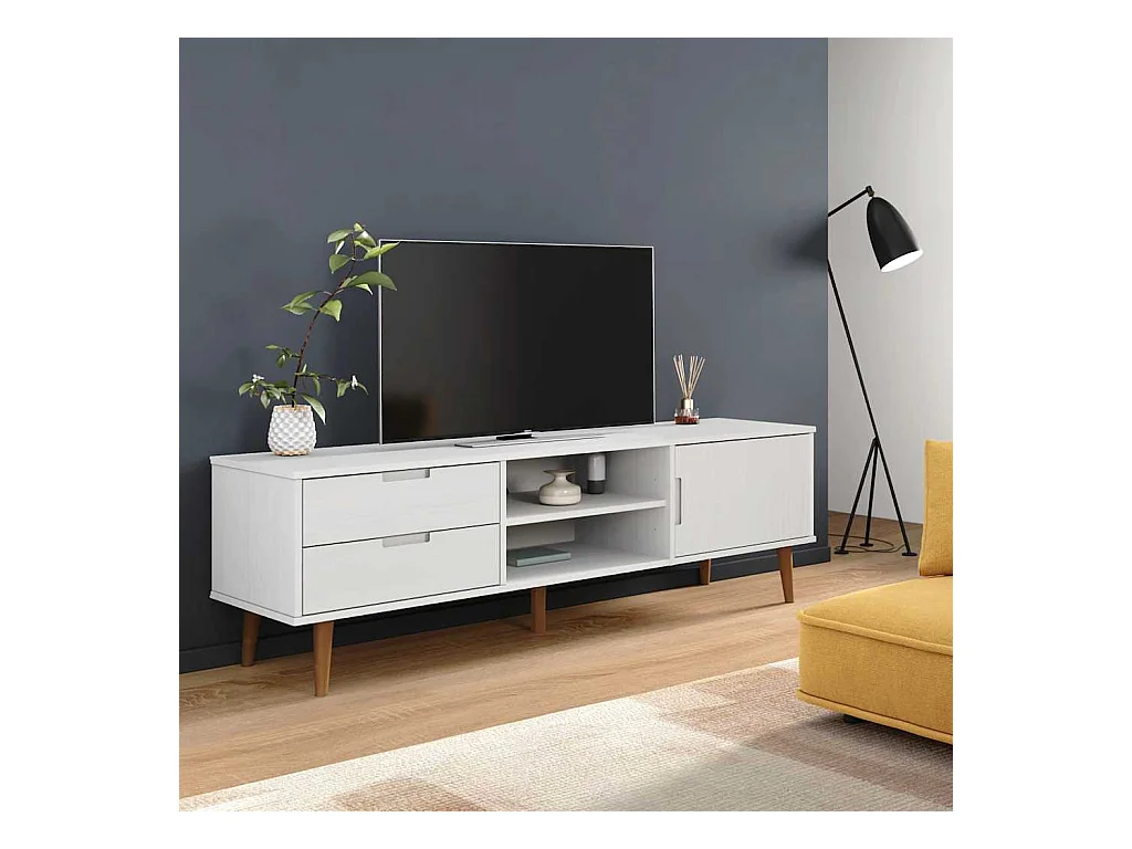 Mueble de TV | Mueble de salón MOLDE madera maciza de pino blanca 158x40x49 cm