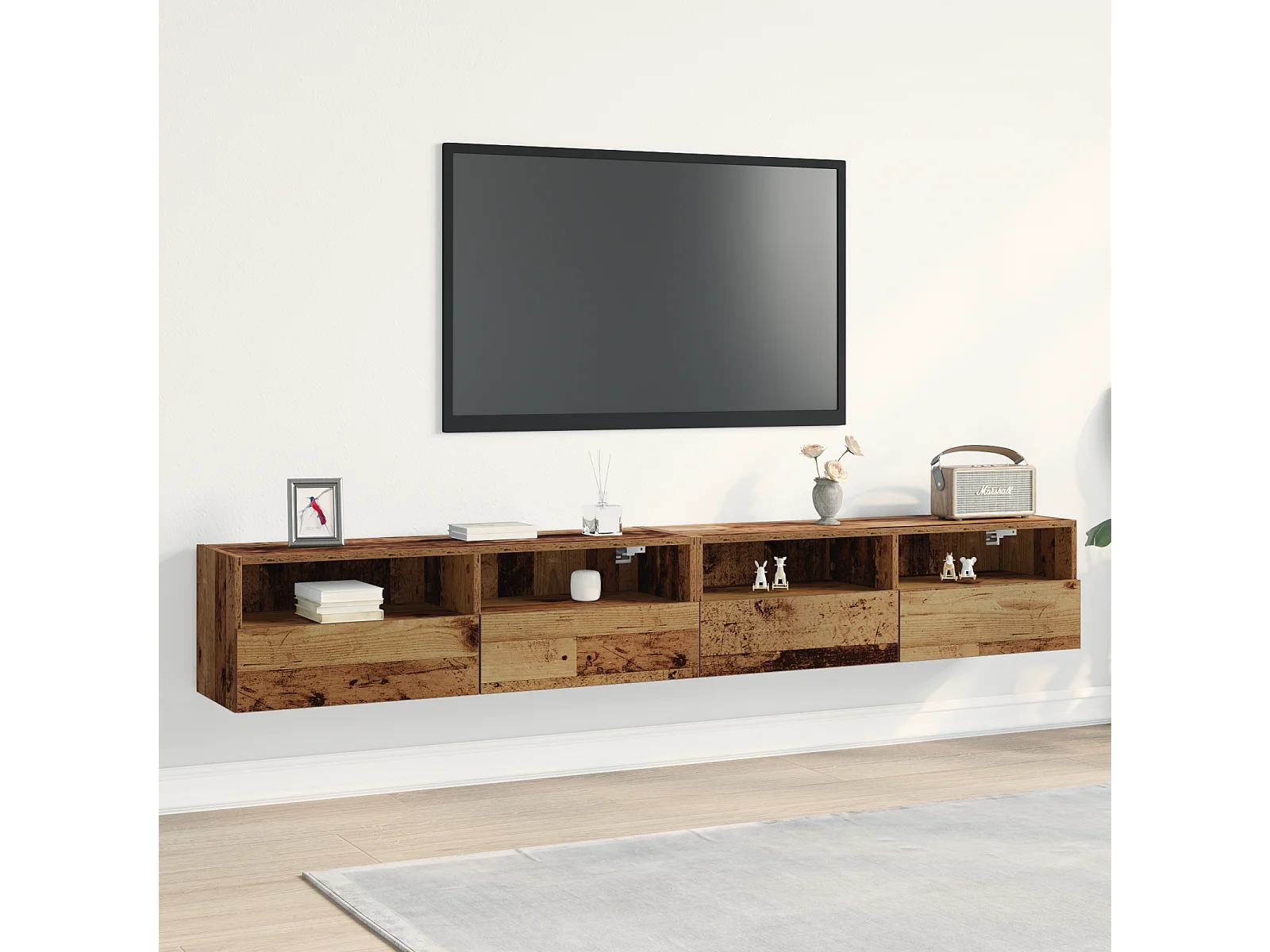 muebles para TV | Gabinetes de TV | Muebles de salón de pared 2 uds madera envejecida 100x30x30 cm