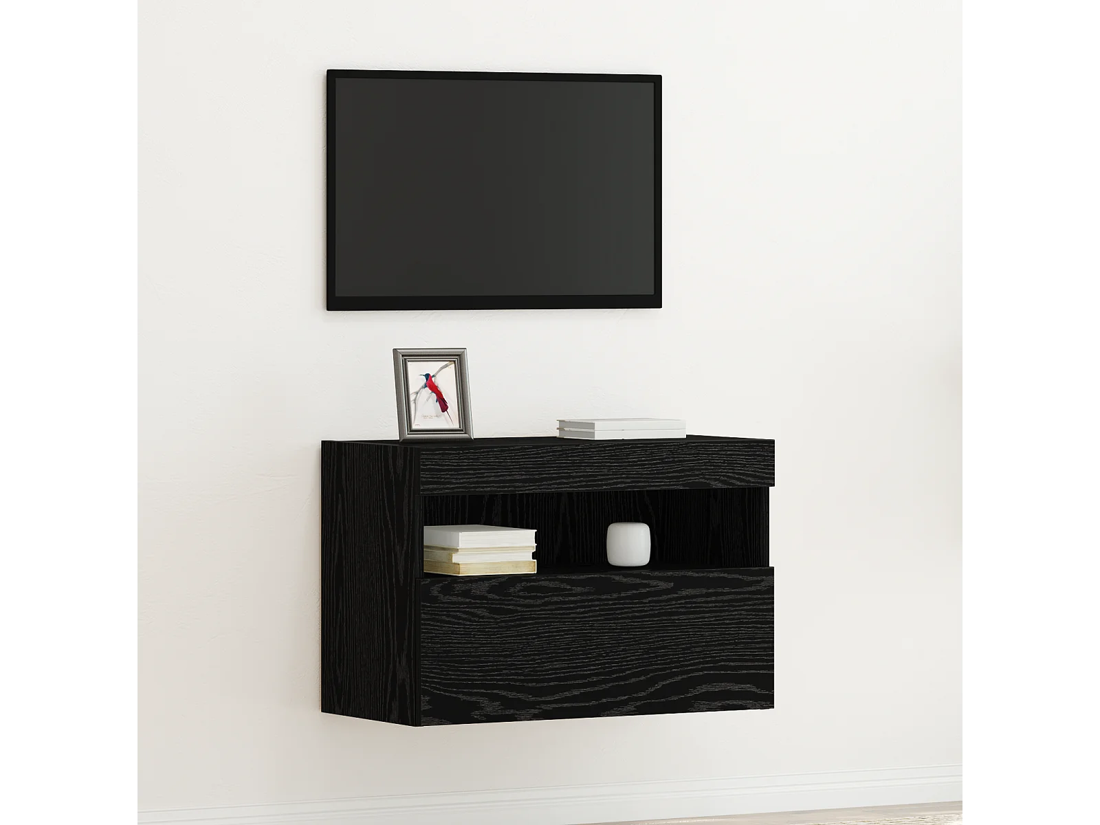 Mueble de TV | Mueble de salón de pared con luces LED negro 60x30x40 cm