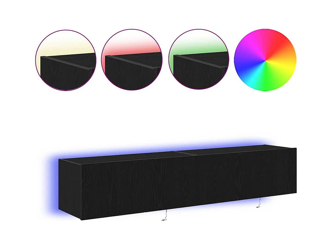 Mueble de TV de pared con luces LED negro 80x31x35 cm