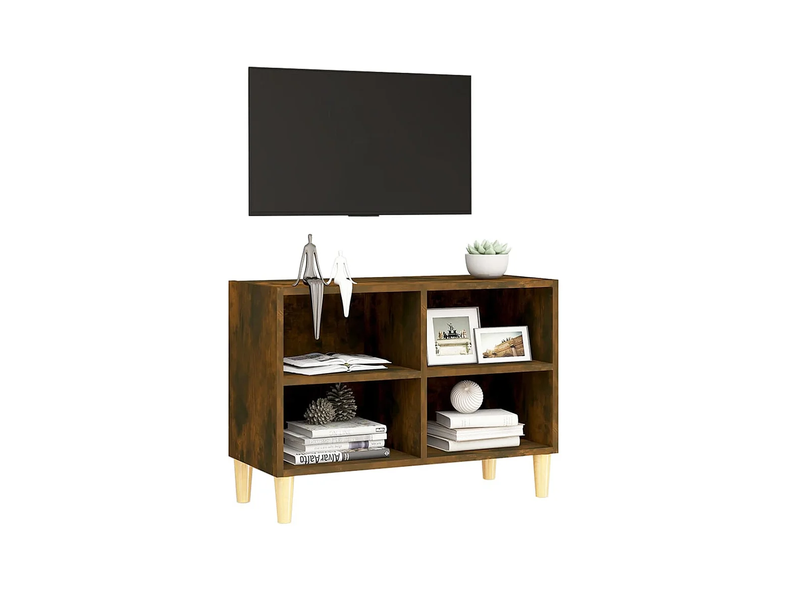 Mueble de TV | Mueble de salón patas de madera maciza roble ahumado 69,5x30x50 cm