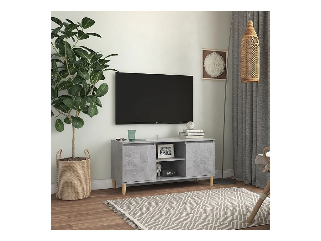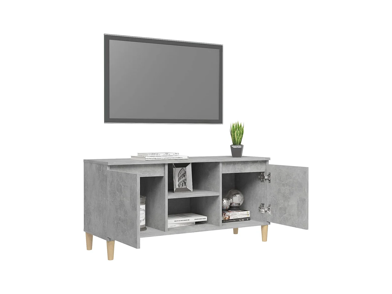 Mueble de TV | Mueble de salón patas madera maciza gris hormigón 103,5x35x50 cm