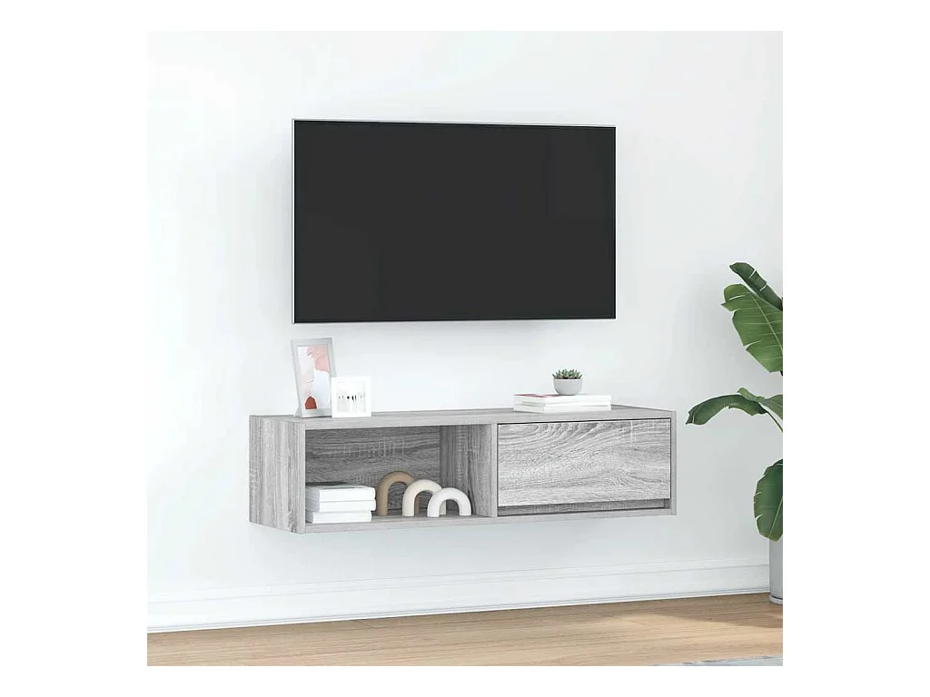 Mueble de TV | Mueble de salón madera contrachapada gris hormigón 100x31x25,5 cm