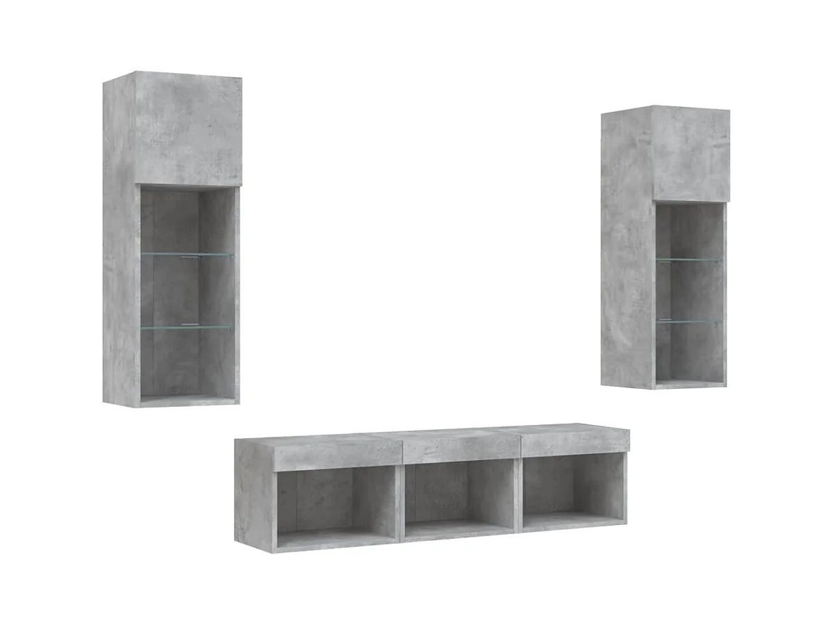 Mueble de TV multimedia estante para TV aparador de TV comedor sala de estar dormitorio con LED 5 piezas madera de ingeniería gris 02_0029383