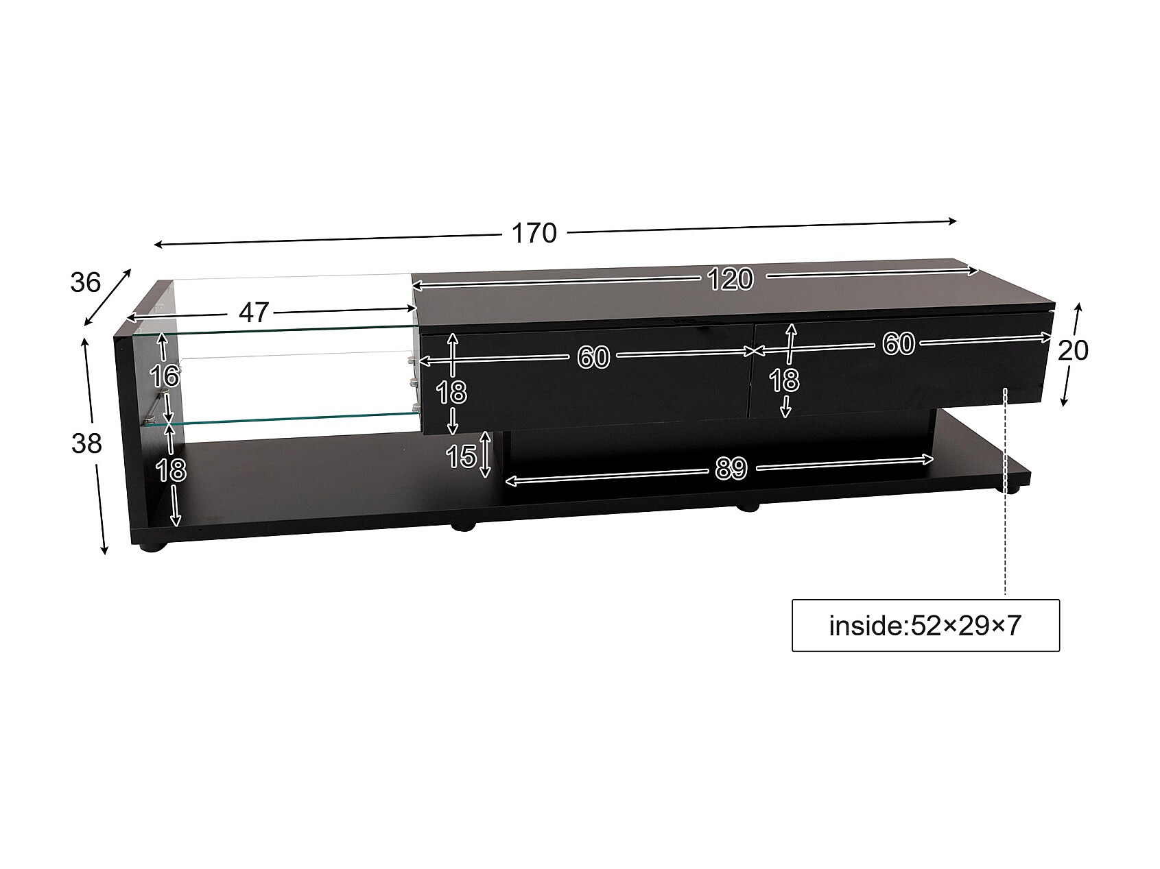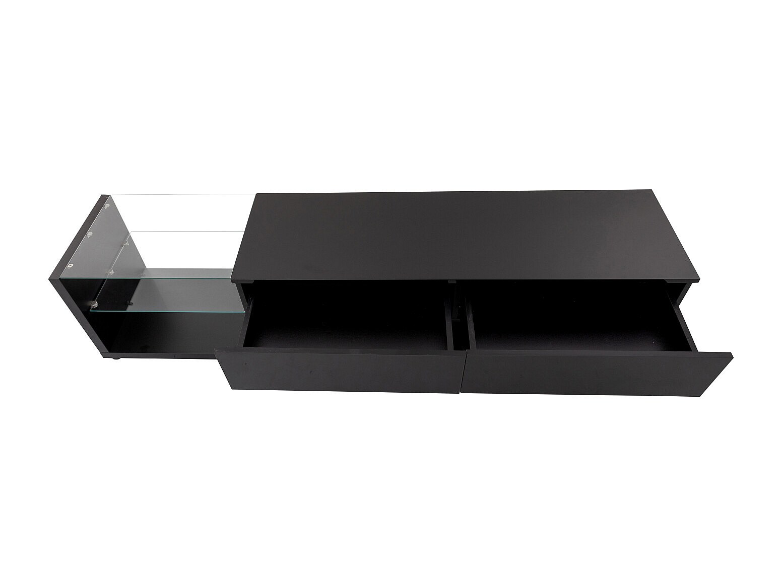 Mueble de TV negro con cajones, aparador de TV con LED y estantes de cristal, mueble de TV para salón