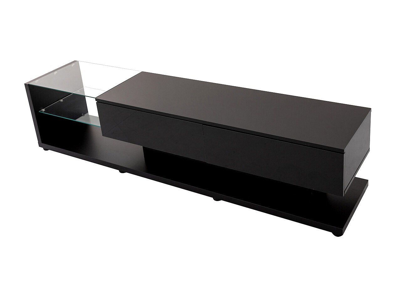 Mueble de TV moderno, práctico espacio de almacenamiento, mesa de TV con efecto madera, estantes de vidrio, LED, negro