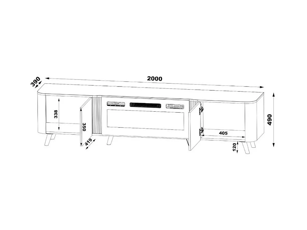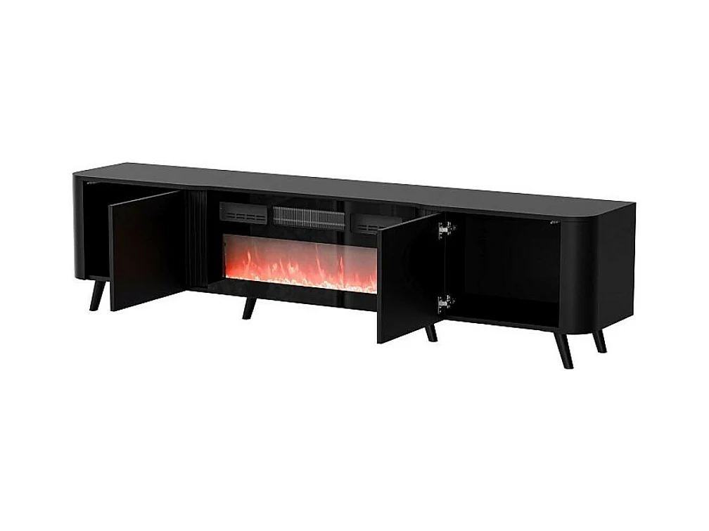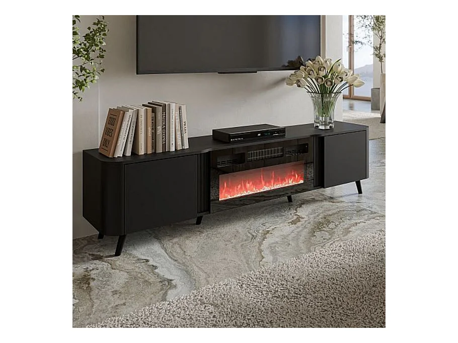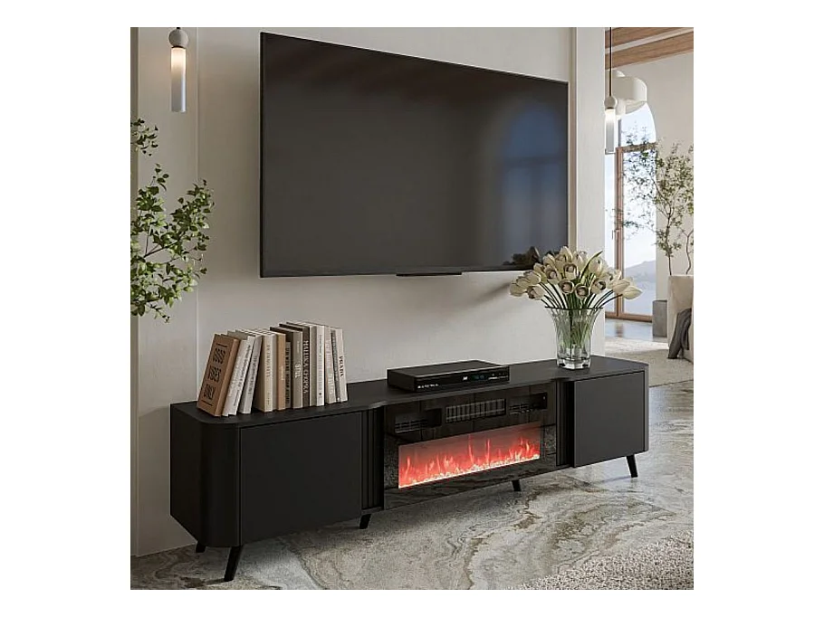 Mueble de TV negro de 200 cm con chimenea eléctrica Lucky