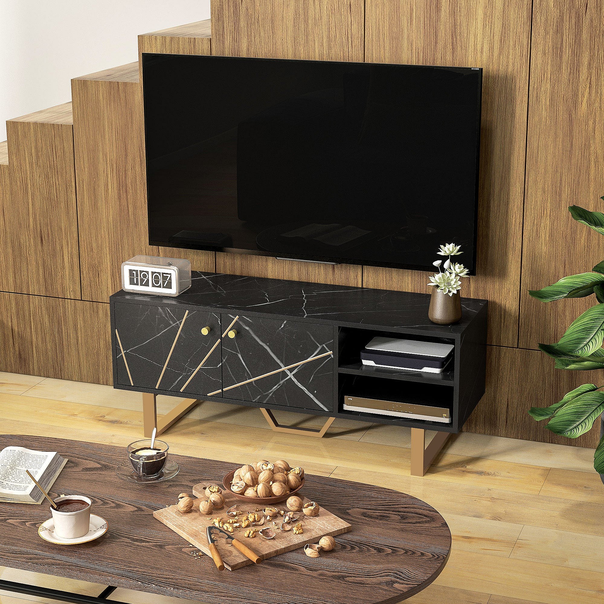 Mueble de TV Pangio Homcom 2 puertas + 2 compartimentos negro 45x110x35 cm