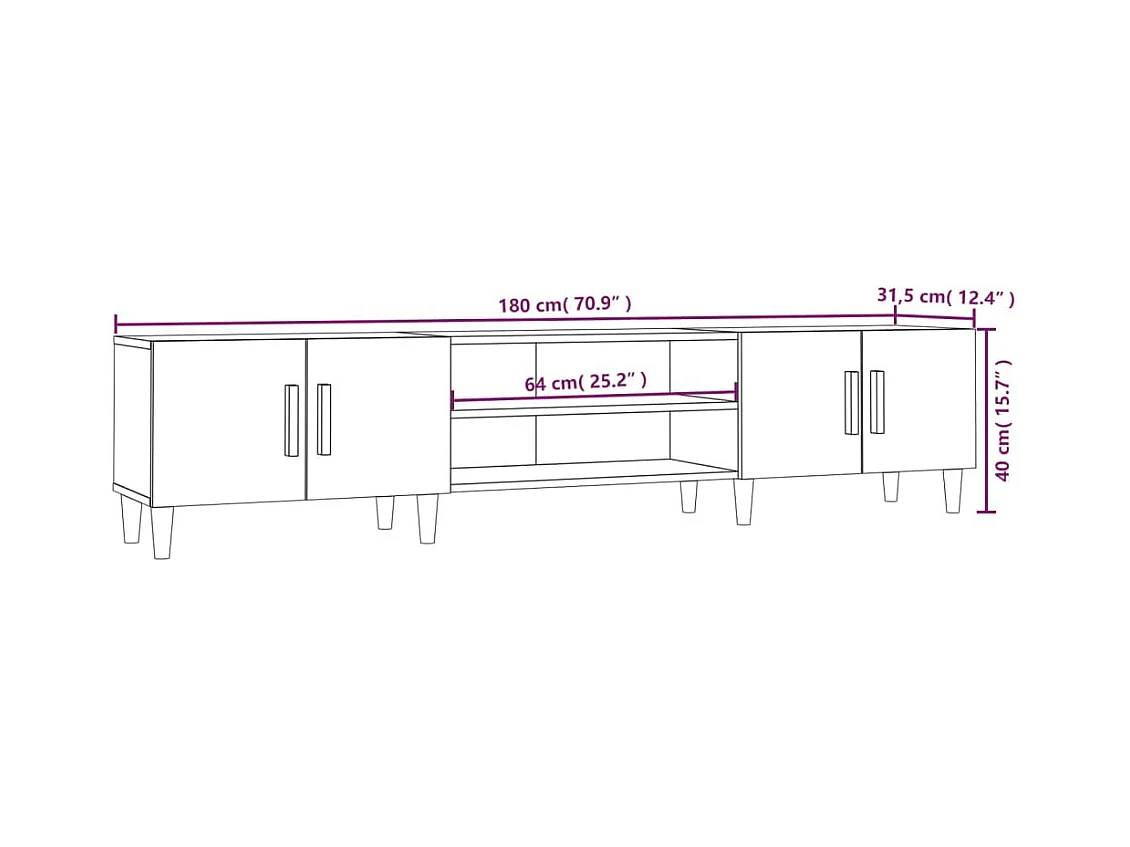 Mueble de TV roble ahumado 180x31,5x40 cm madera de ingeniería