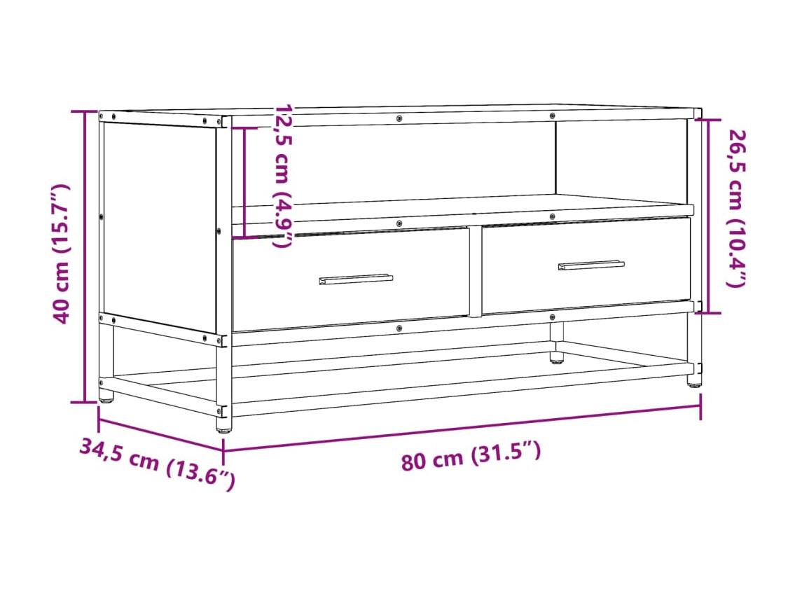 Mueble de TV de roble Sonoma 80x34,5x40 cm de madera contrachapada y metal