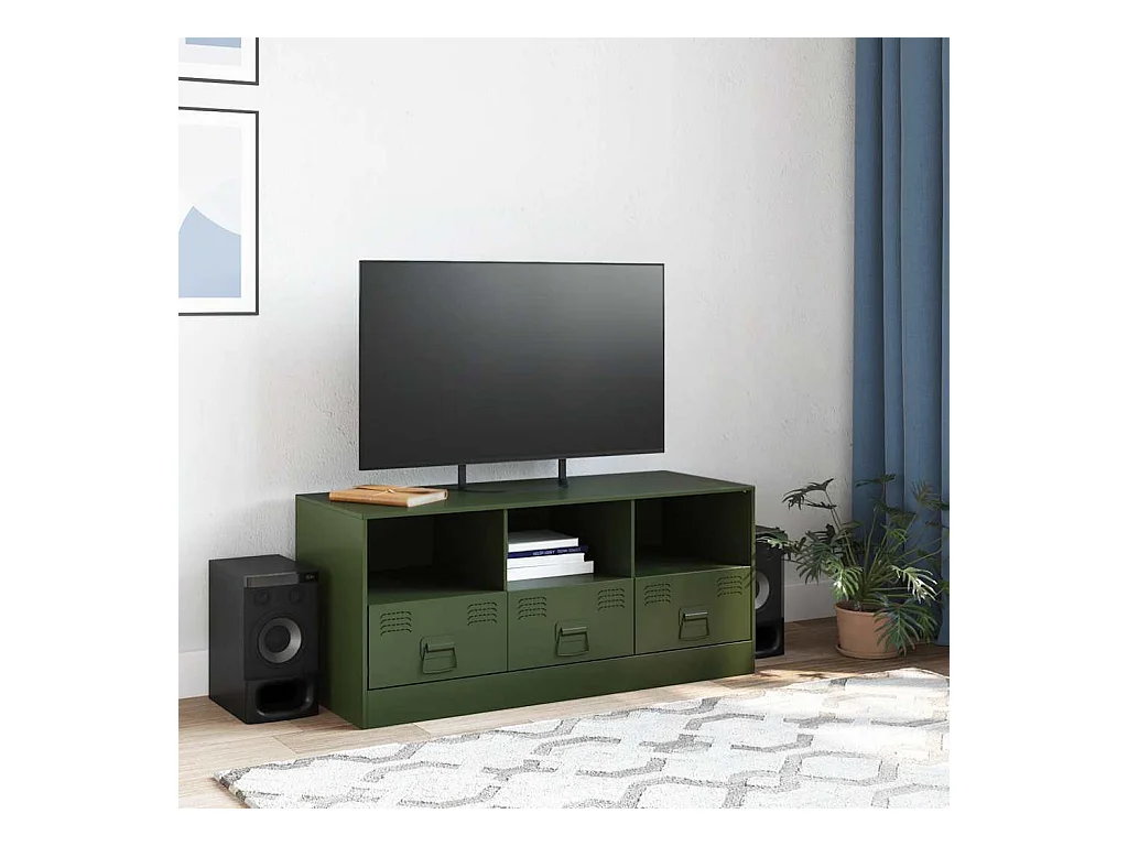 Mueble TV verde oliva 101,5x39x43,5 cm acero laminado en frío