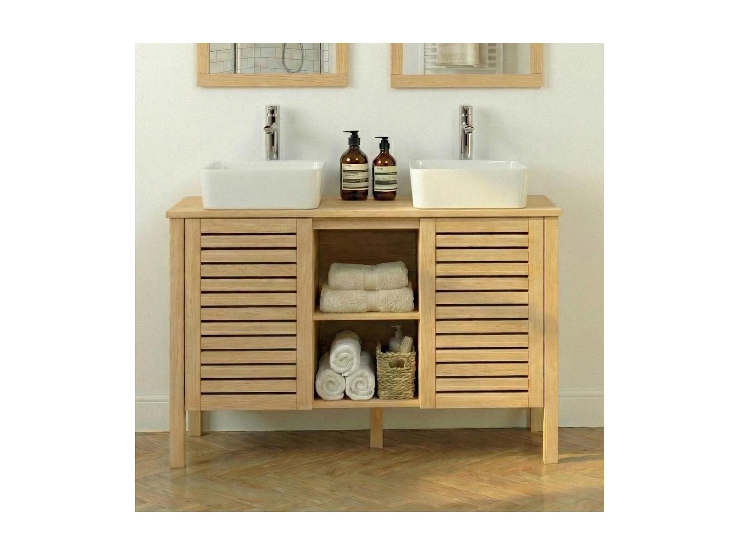 Mueble de lavabo doble TALIX de 120 cm con patas de roble natural