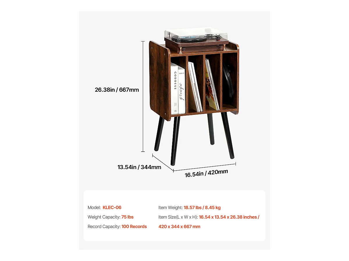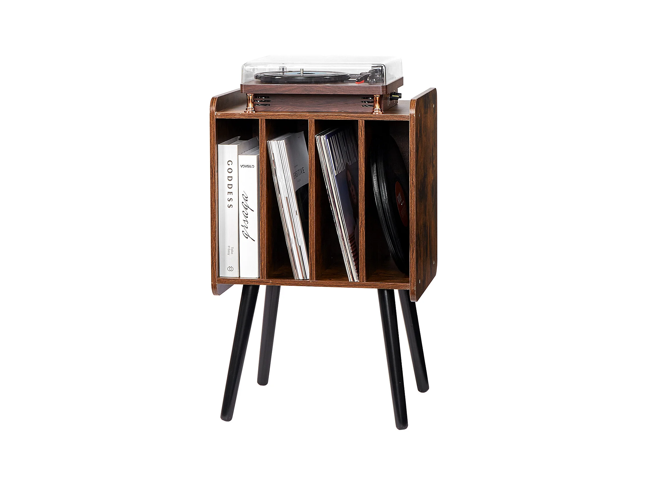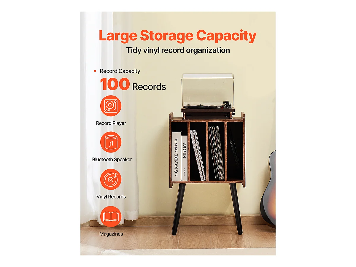 Mueble DVD SucceBuy Soporte para Tocadiscos de 2 Niveles , Marrón, Puede Contener 100 Álbumes