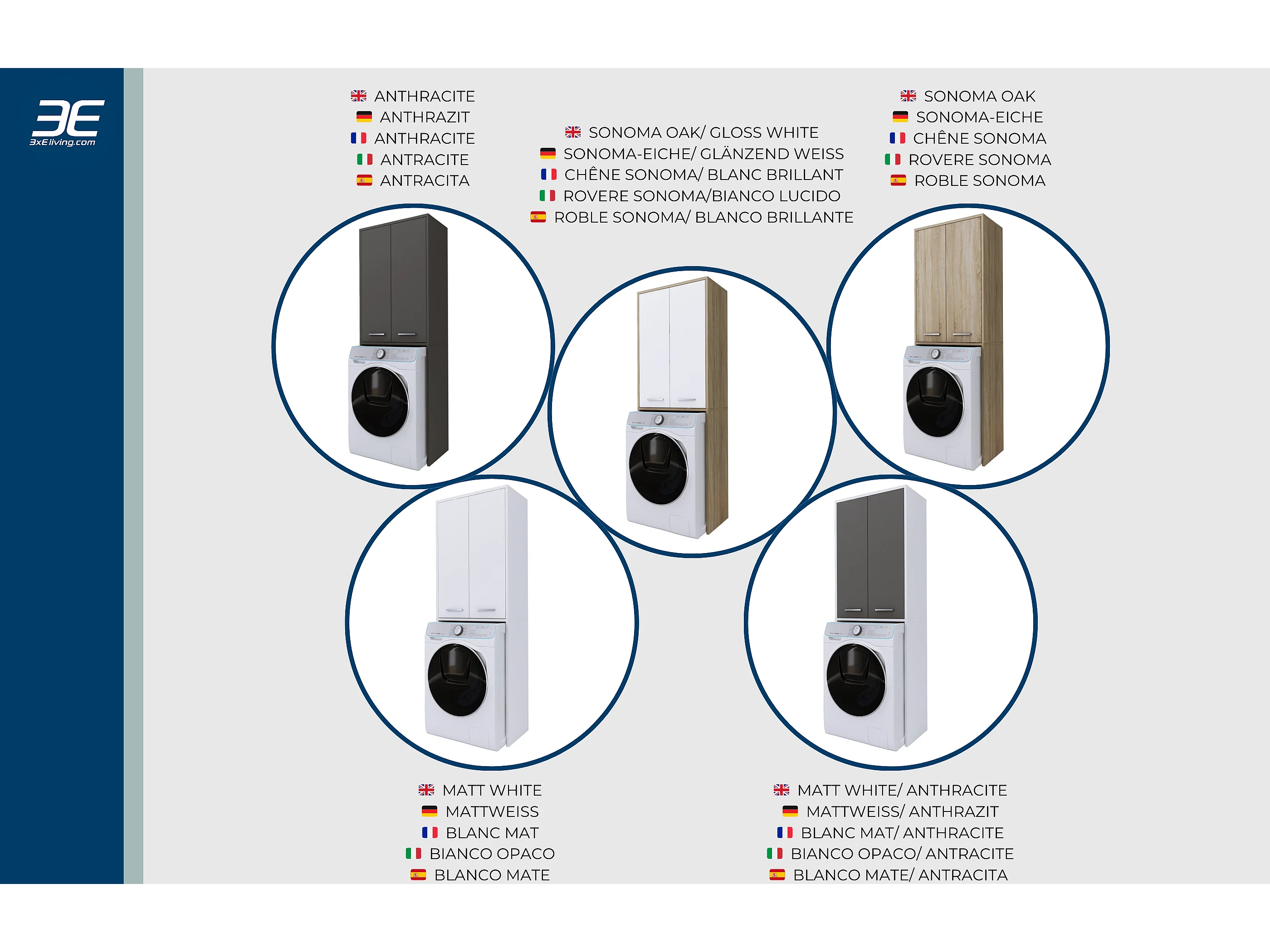 Mueble encima de lavadora con puerta larga en GRIS/BLANCO, 64 x 31 x 180 cm