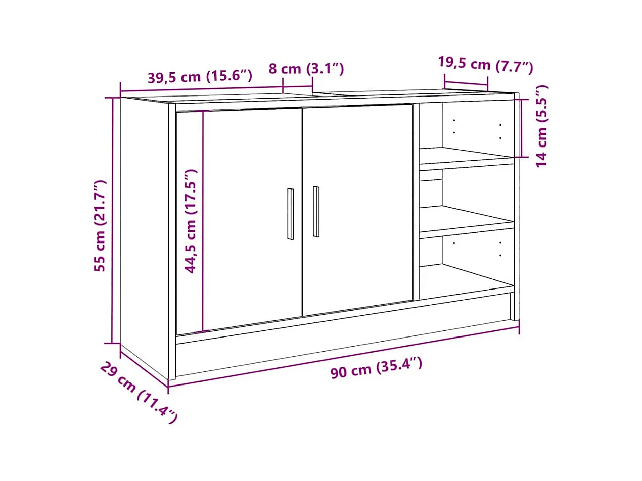 Mueble lavabo blanco 90x29x55 cm madera de ingeniería