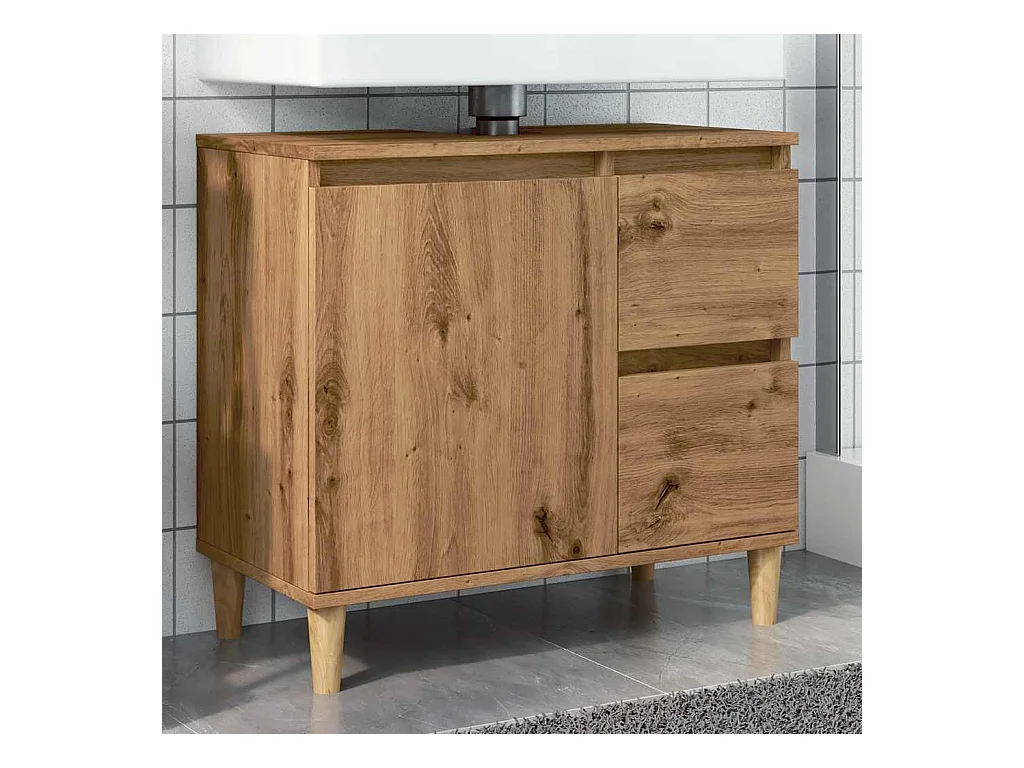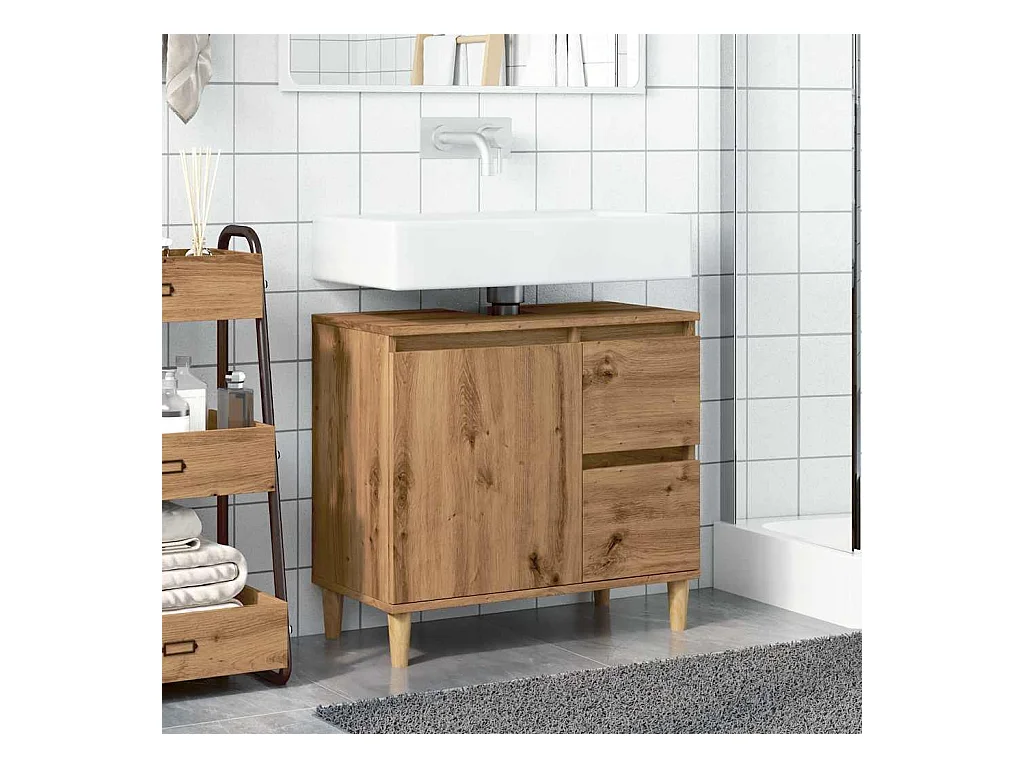 Mueble lavabo de roble artesanal 65x33x60 cm madera de ingeniería