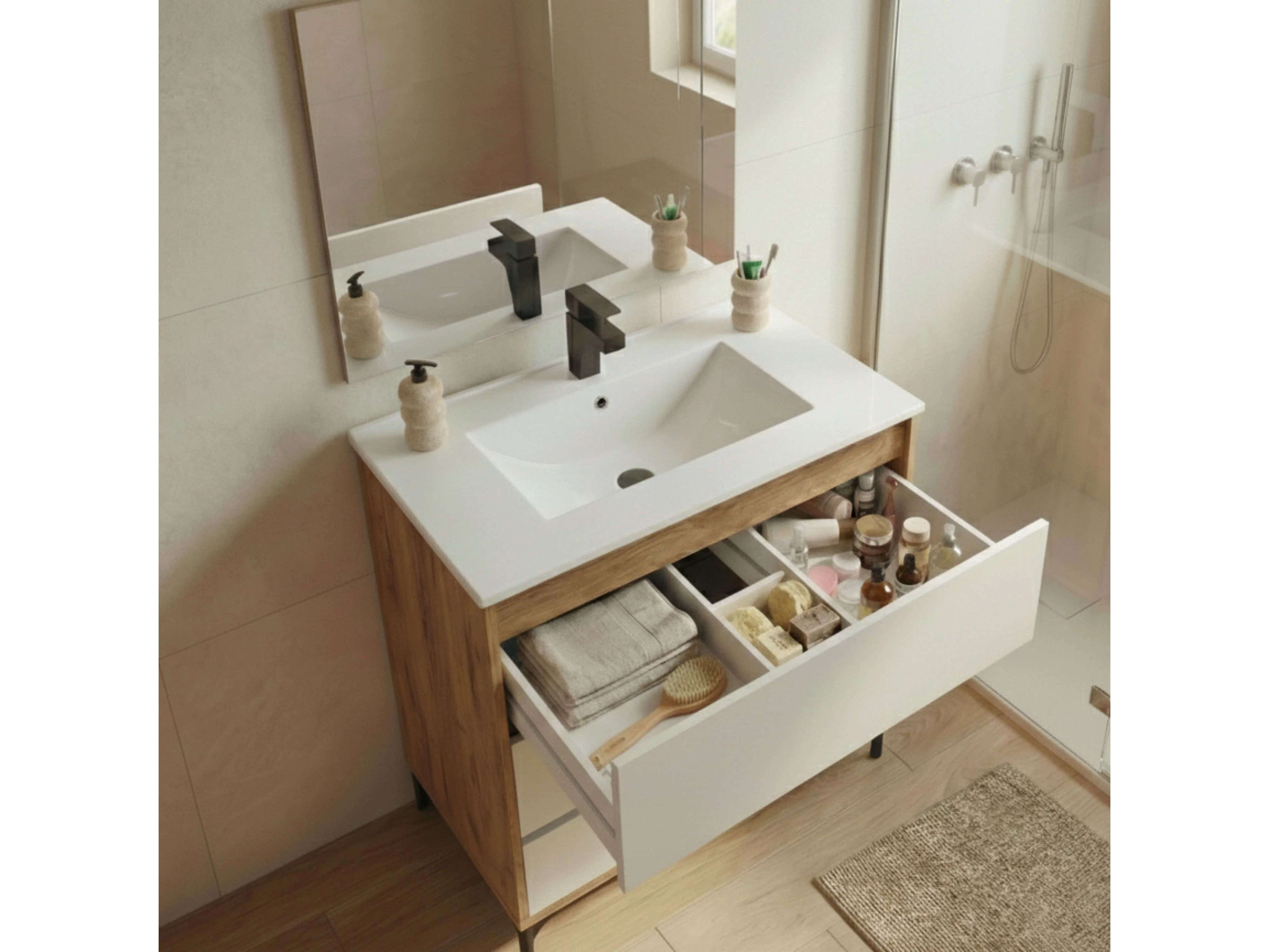 Mueble lavabo Elba baño 3 cajones roble kraft y blanco mate 91x80,5x45,5cm