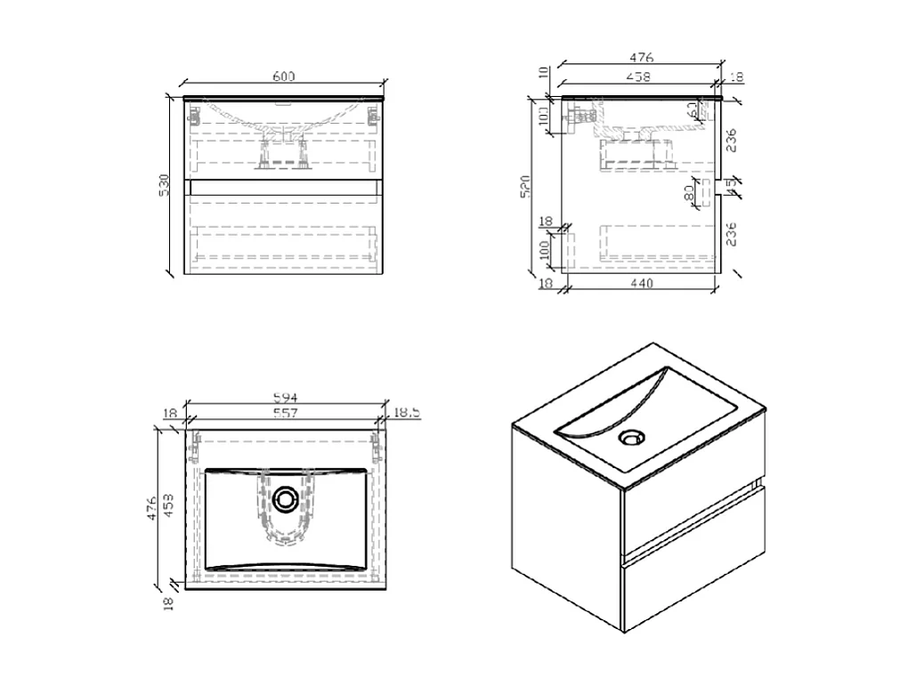 Mueble lavabo + lavabo 60cm MONTADO SIENA Roble Claro