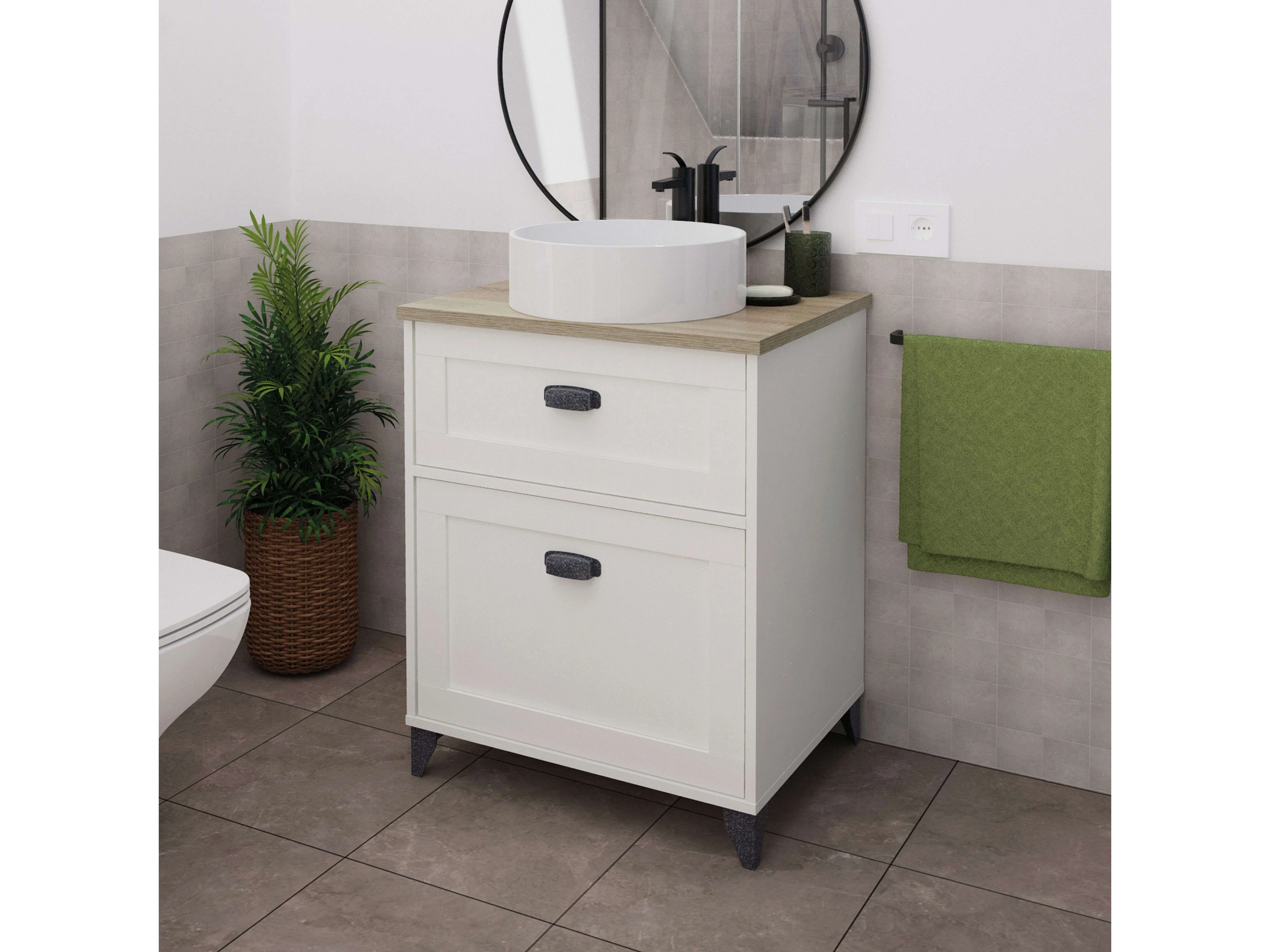 Mueble lavabo Toscana 60 2 cajones blanco soft y roble cambrian 80x61x47 cm