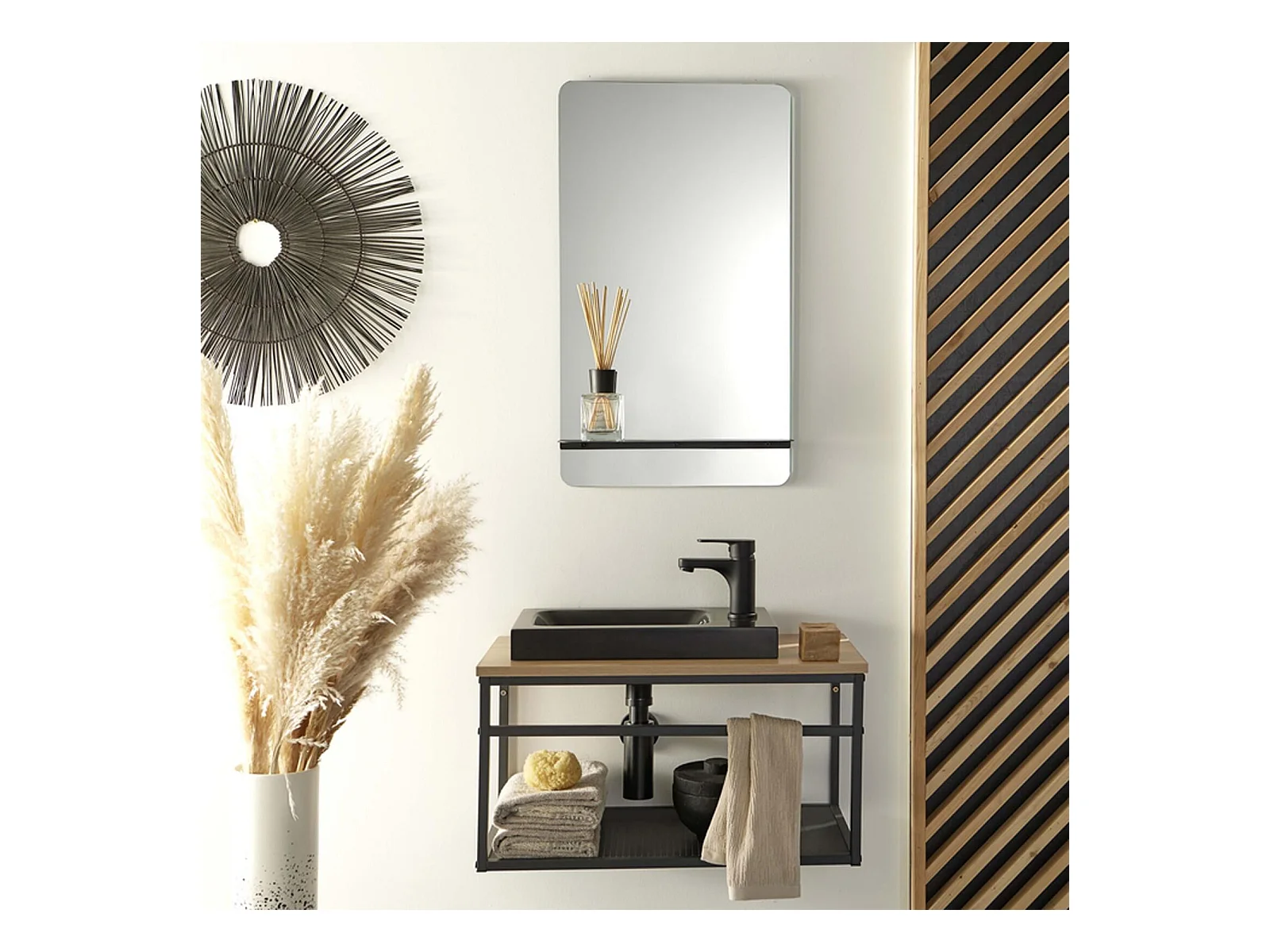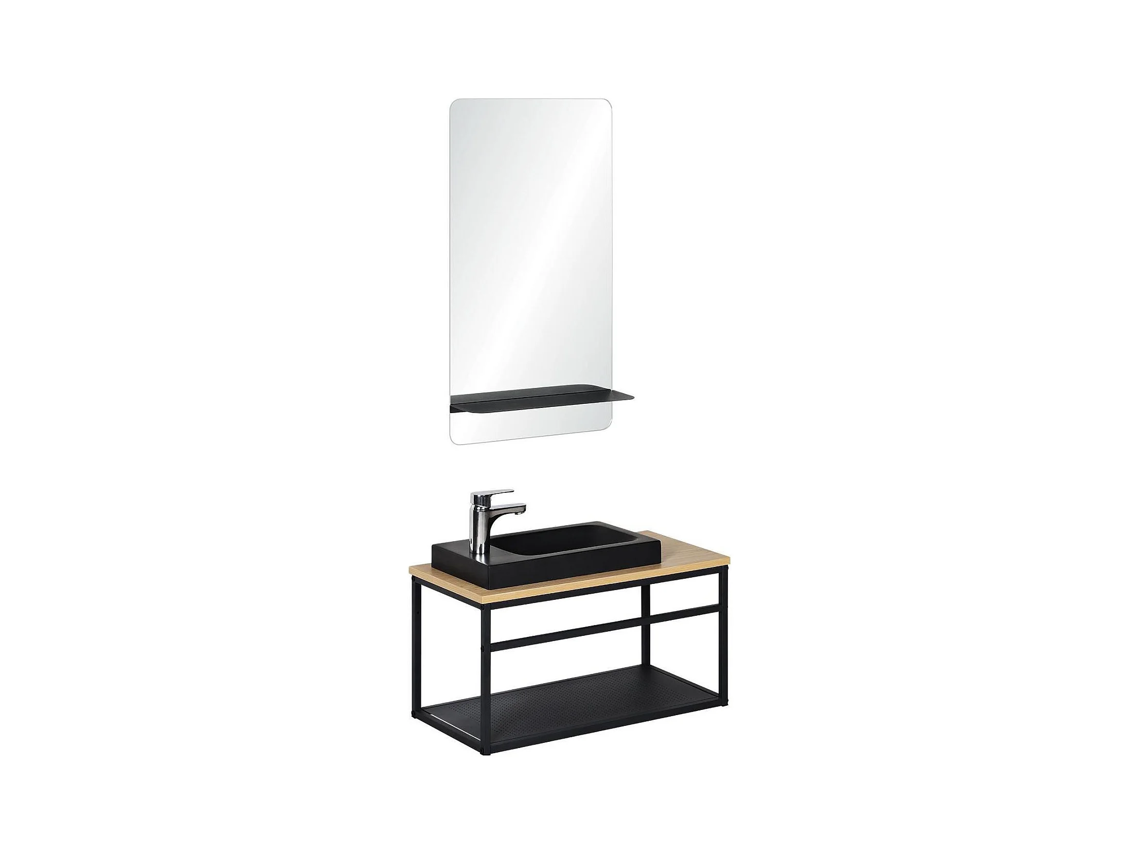 Conjunto de lavabo NOVA de metal y madera con grifería negra y espejo ovalado
