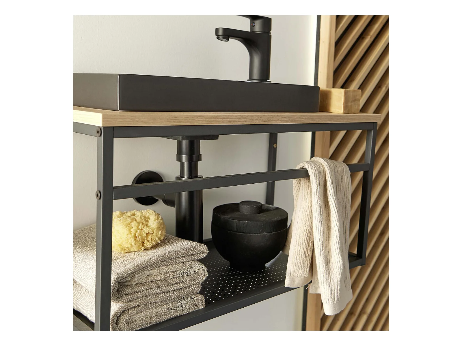 Conjunto de lavabo de pared NOVA de metal y madera con grifería negra
