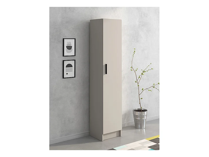 Mueble multiusos Armario Auxiliar Multiusos Color Beige – 1 Puerta, 4 Baldas, 37x180x35 cm – Madera Práctico y Funcional.