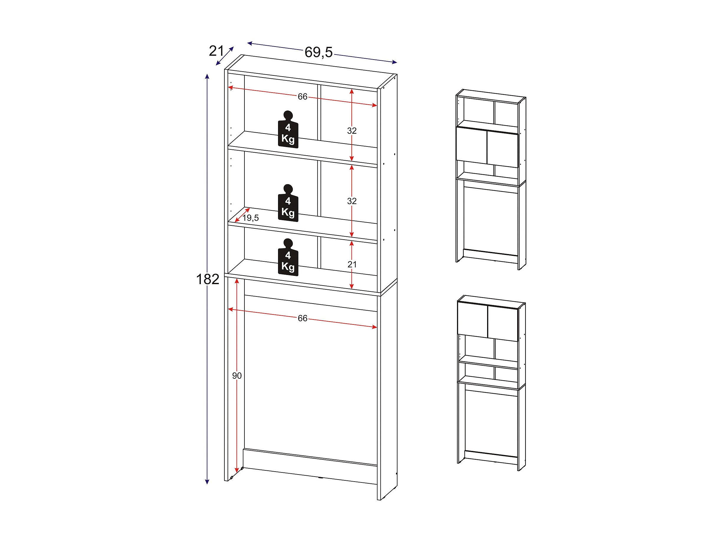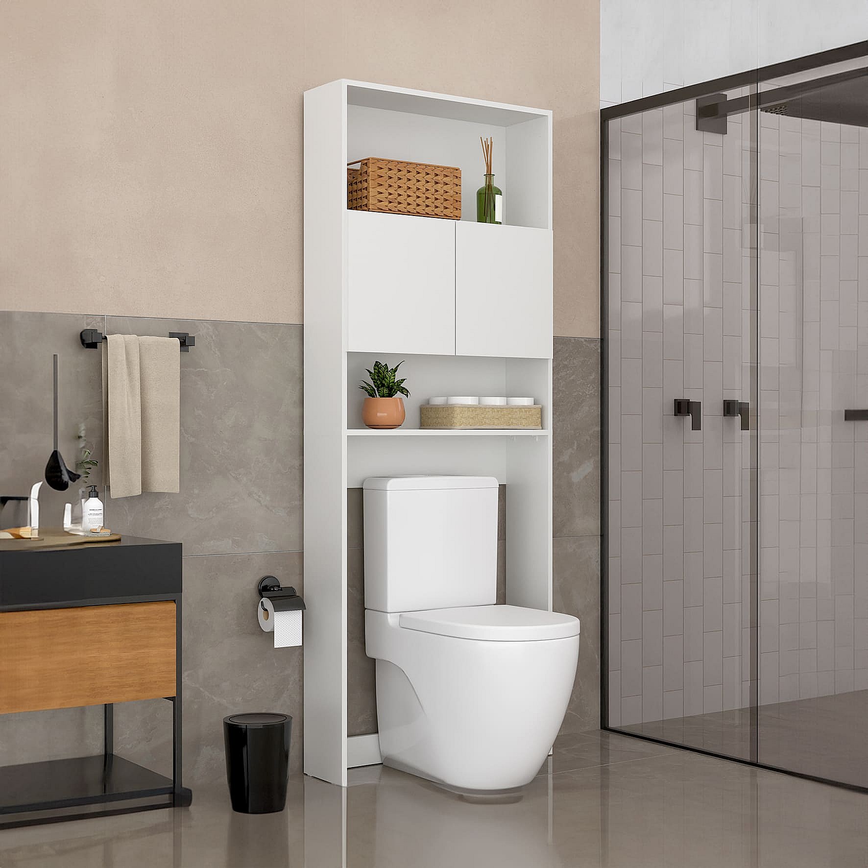 Mueble para baño/lavandería, 2 Puertas centrales, estantes Abiertos, Alto, Color Blanco