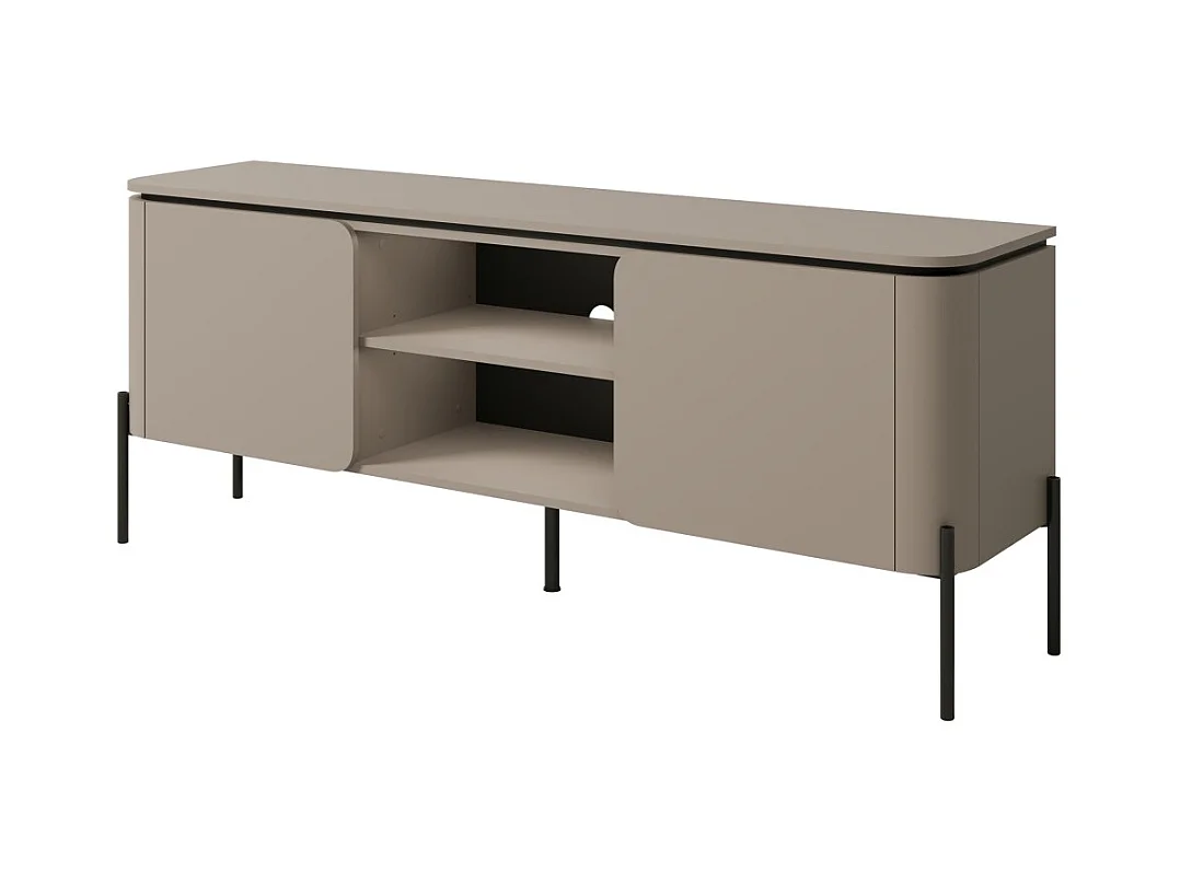 Mueble para TV BELLA 2 puertas – Acabado Congo mate – Diseño redondeado y patas de metal negras