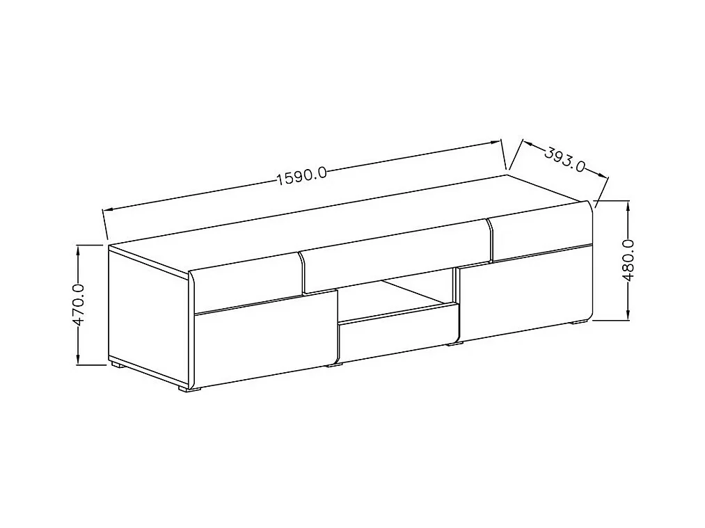 Mueble para TV de 180 cm en colores blanco y negro, colección HAVANA. Mueble de diseño con 3 puertas y 3 cajones.