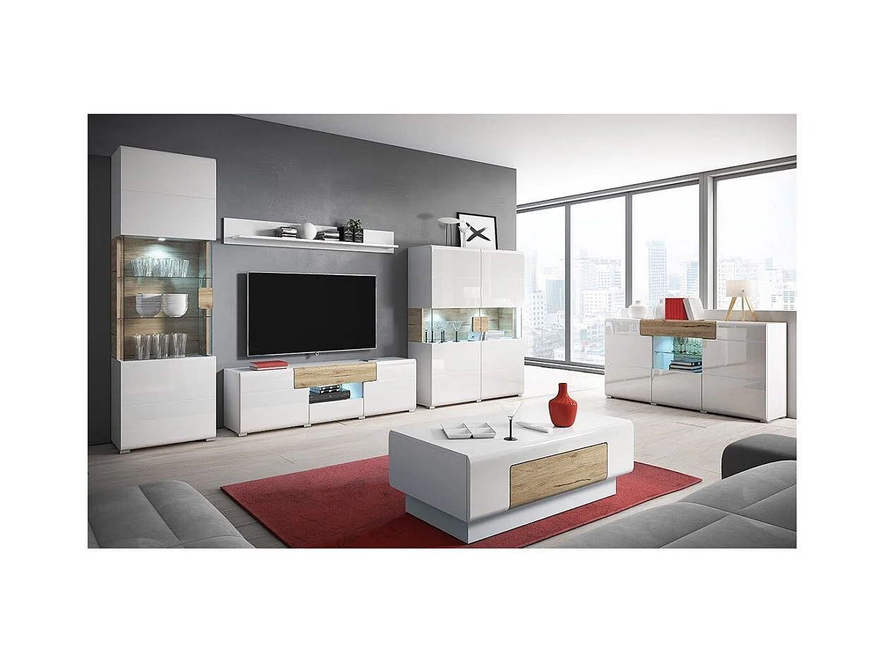Mueble para TV de 160cm colección OHIO. Iluminación LED integrada. Colores blanco y roble.
