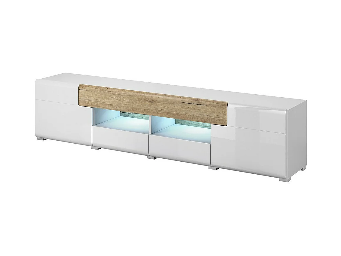 Mueble para TV de 210 cm colección OHIO con LED integrado. Color blanco y acabados en roble.
