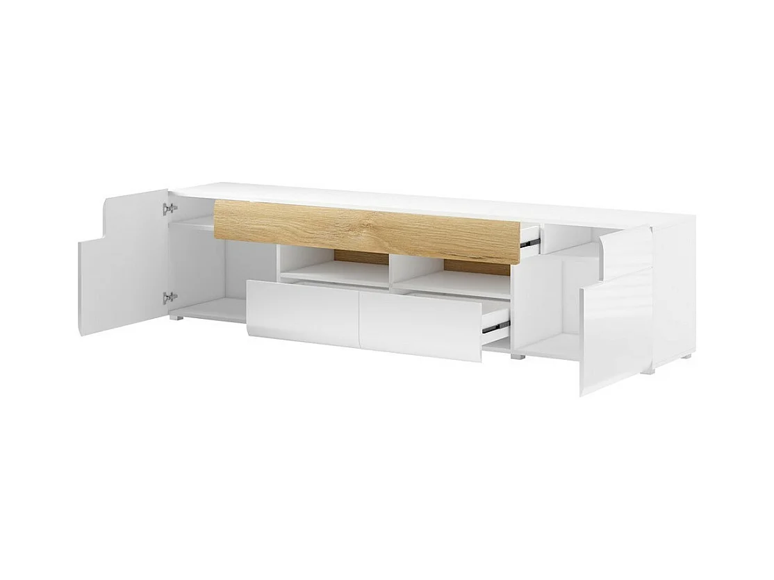 Mueble para TV 210cm colección OHIO. Color blanco y acabados en roble.