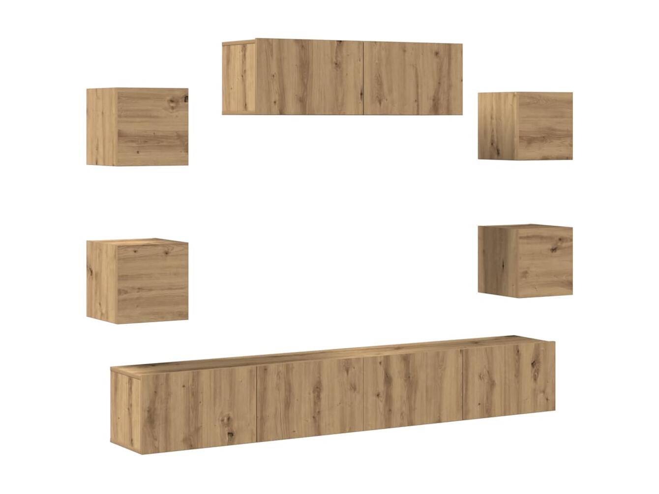 Conjunto de mueble de TV 7 piezas montado la pared madera vieja