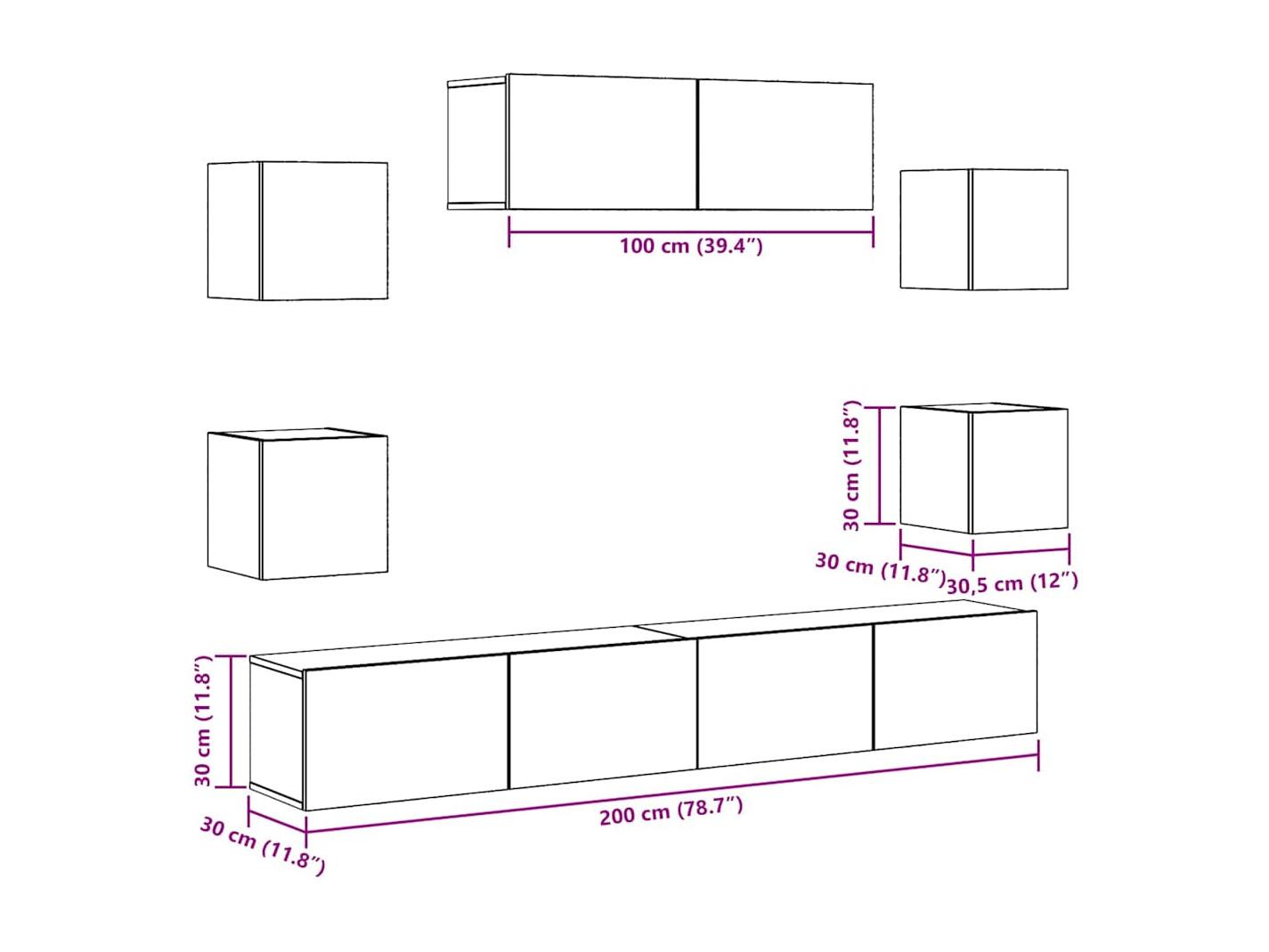 Conjunto de mueble de TV 6 piezas montado la pared madera vieja