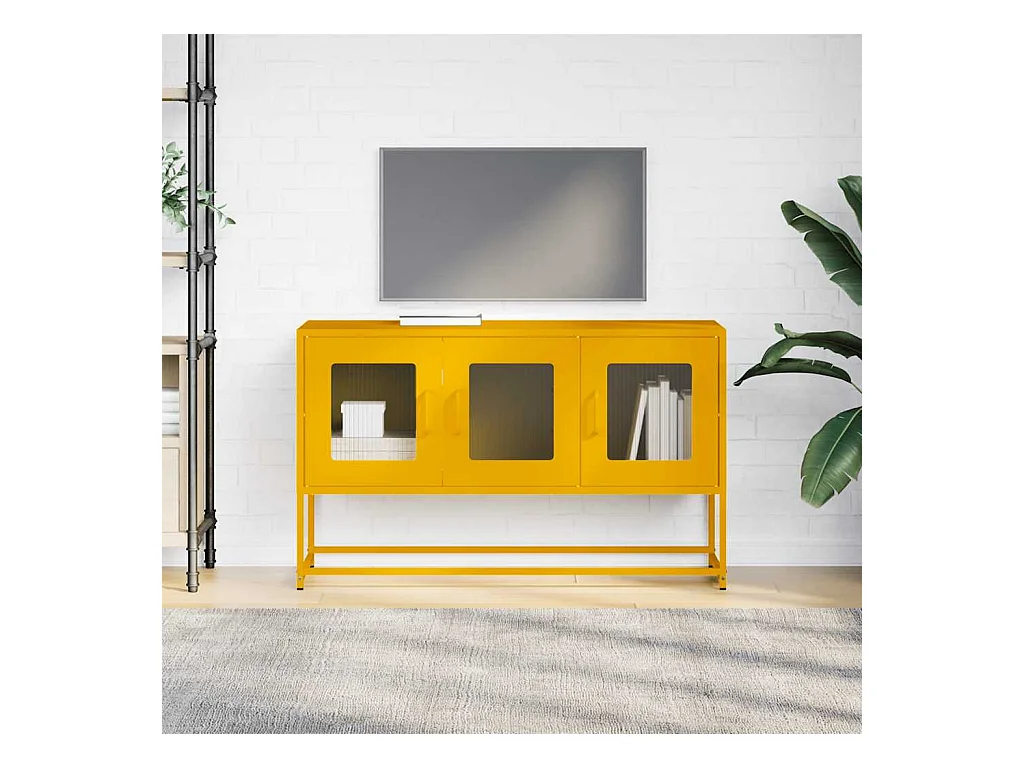 Mueble TV | Gabinete de TV | Mueble de salón acero laminado en frío amarillo mostaza 68x39x60,5 cm