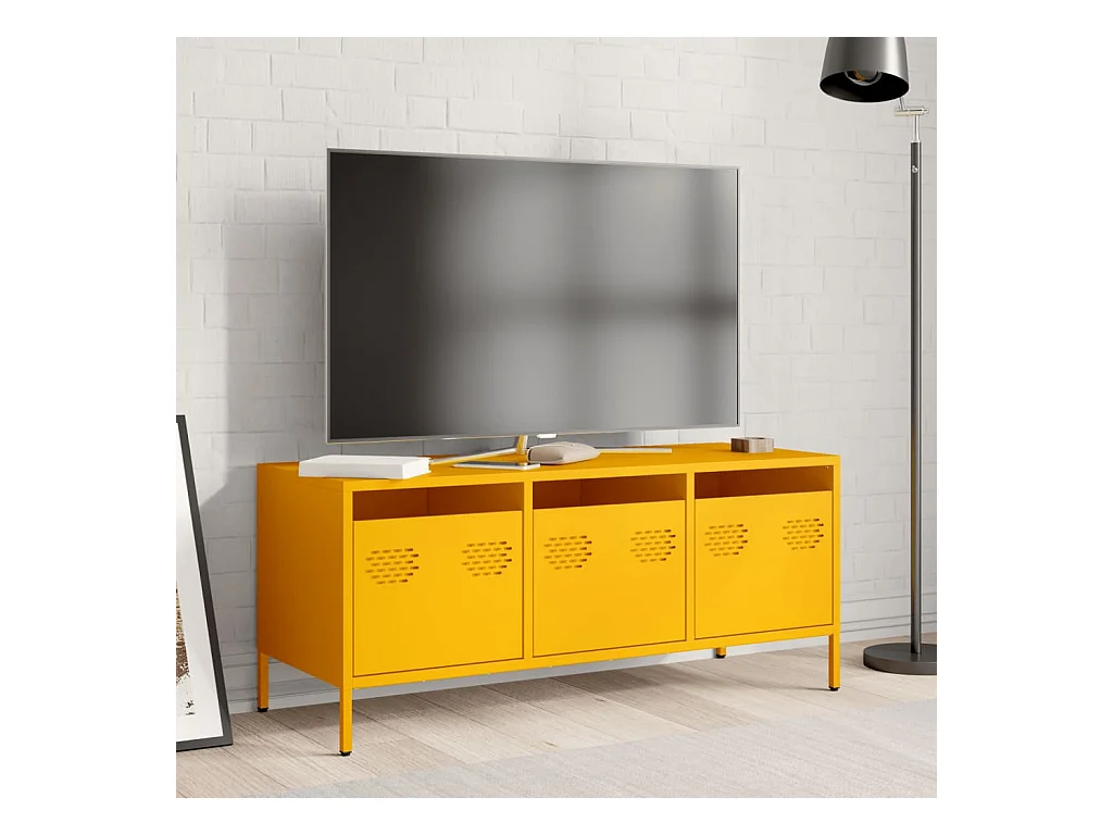 Mueble para TV | Gabinete de TV | Mueble de salón acero laminado en frío amarillo 100,5x39x43,5 cm