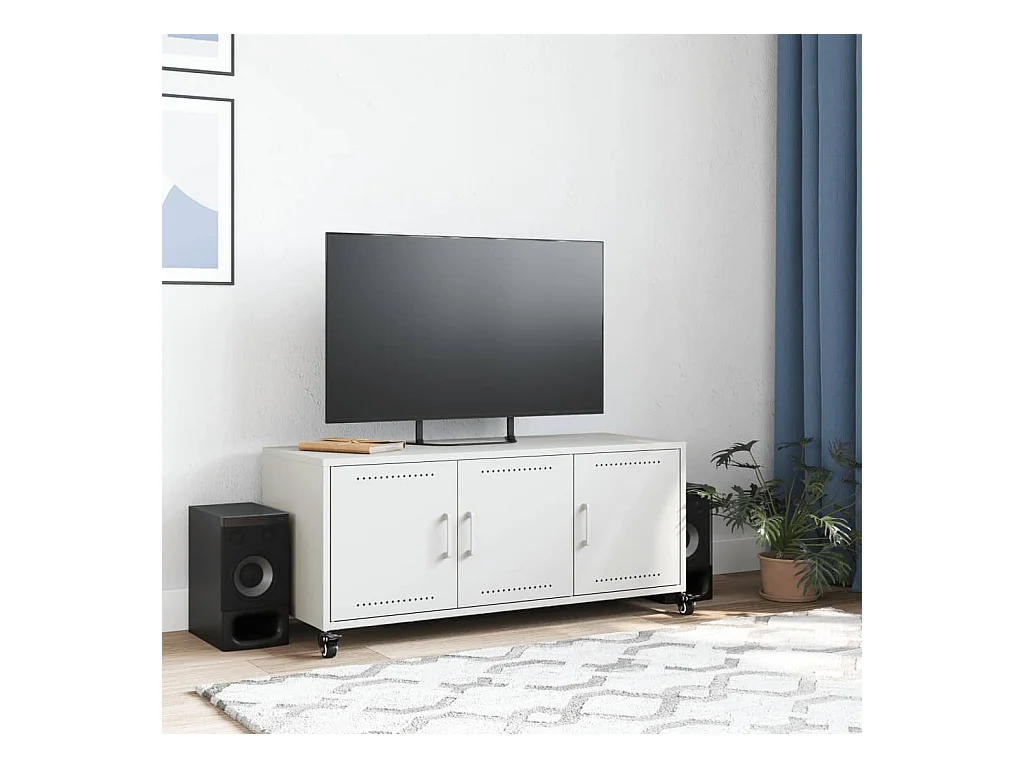 Mueble para TV | Gabinete de TV | Mueble de salón acero laminado en frío blanco 100,5x39x43,5 cm