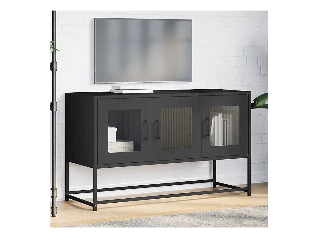 Mueble para TV | Gabinete de TV | Mueble de salón acero laminado en frío negro 100,5x39x60,5 cm