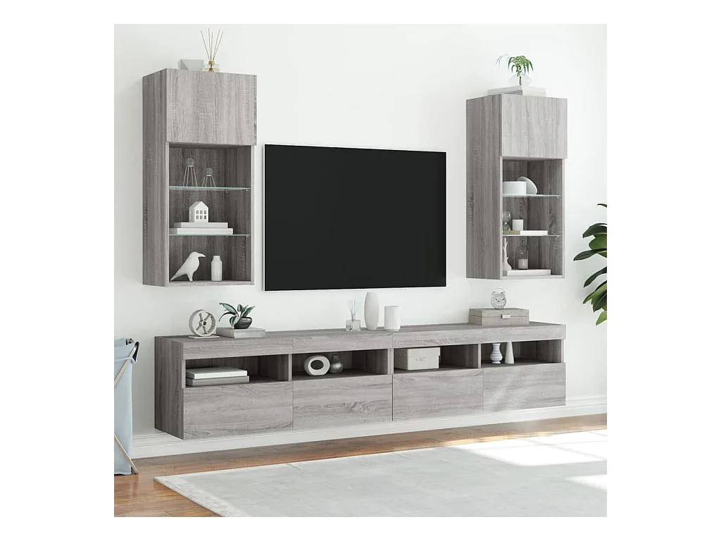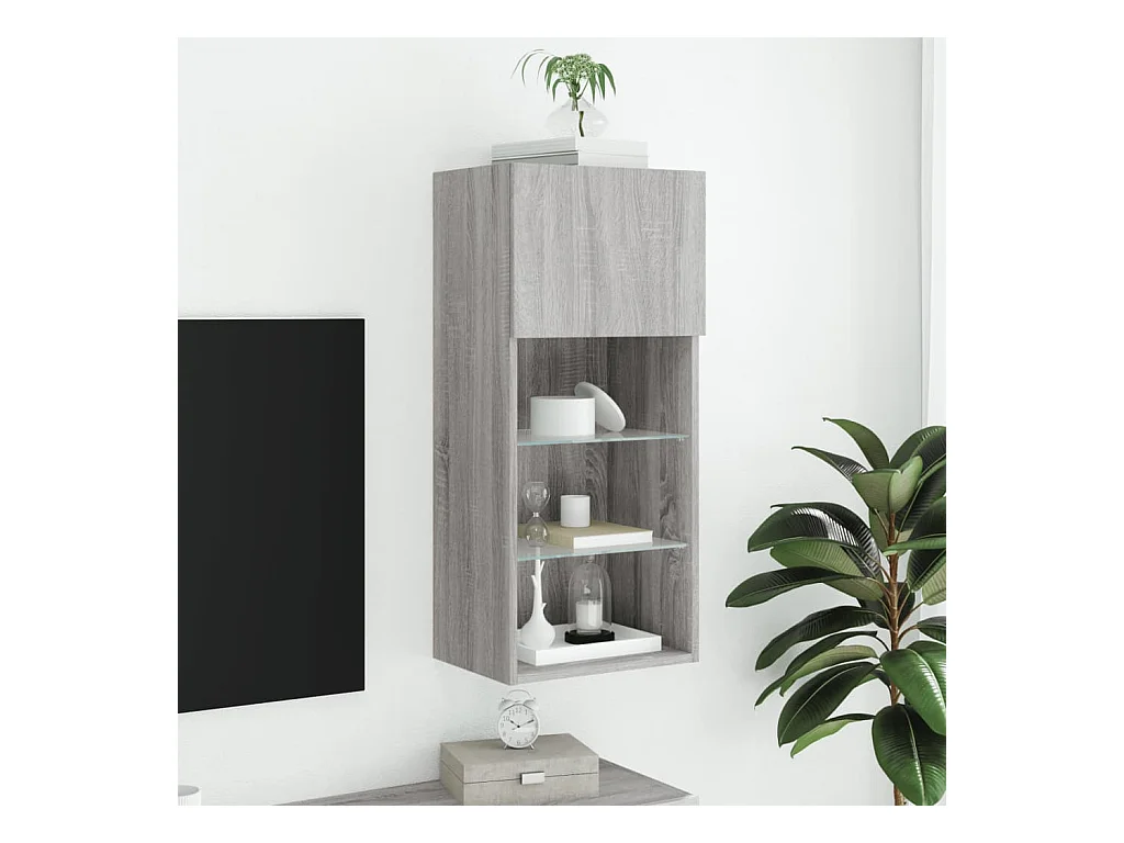 Mueble para TV | Gabinete de TV | Mueble de salón con luces LED gris Sonoma 40,5x30x90 cm