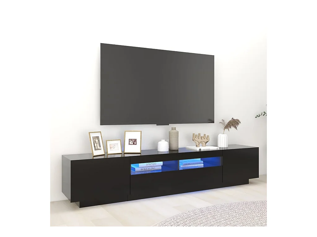 Mueble para TV | Gabinete de TV | Mueble de salón con luces LED negro 200x35x40 cm