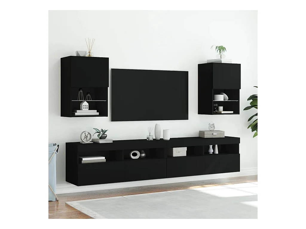 Muebles TV | Gabinetes de TV | Muebles de salón de pared 2 uds madera ingeniería negro 40,5x30x40 cm