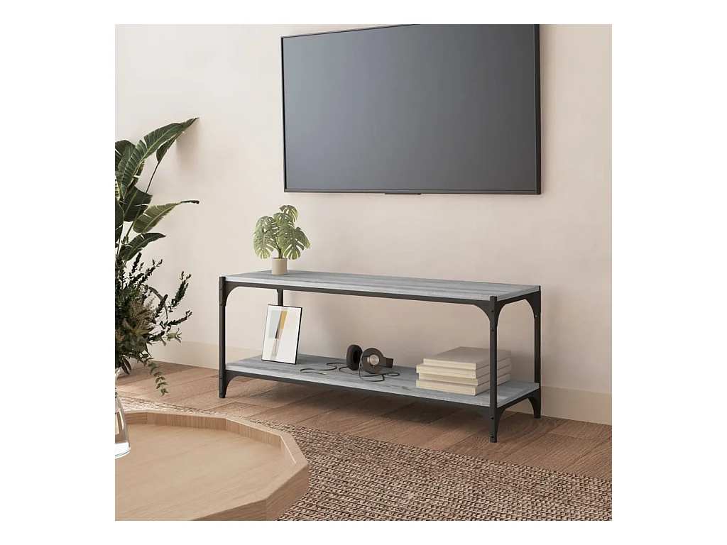 Mueble TV | Gabinete de TV | Mueble de salón metal y madera ingeniería gris Sonoma 100x35x41 cm