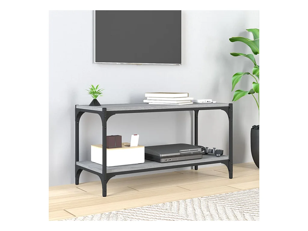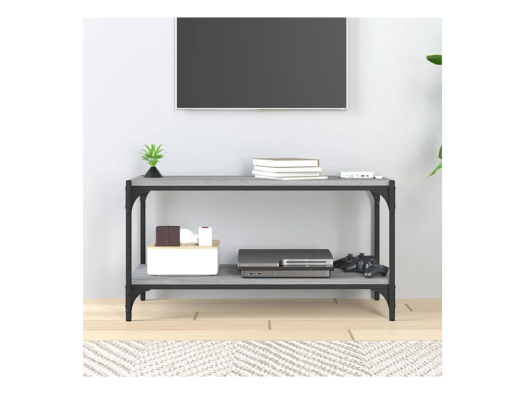 Mueble para TV | Gabinete de TV | Mueble de salón contrachapada y acero gris Sonoma 80x33x41 cm
