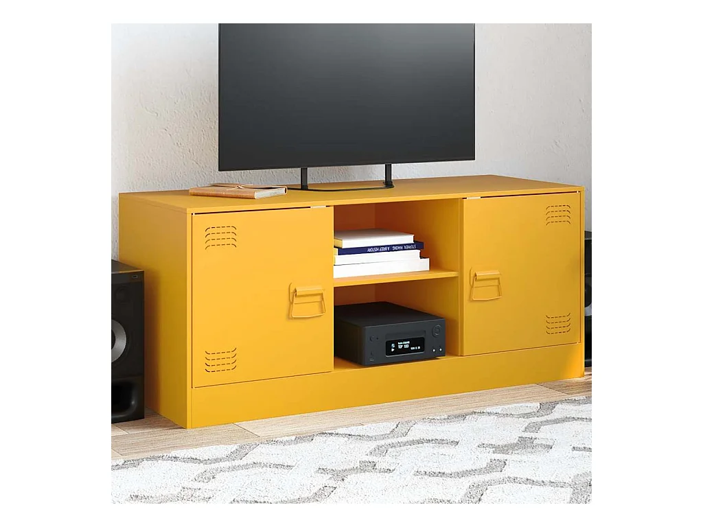 Mueble TV | Gabinete de TV | Mueble de salón acero laminado en frío amarillo mostaza 68x39x60,5 cm