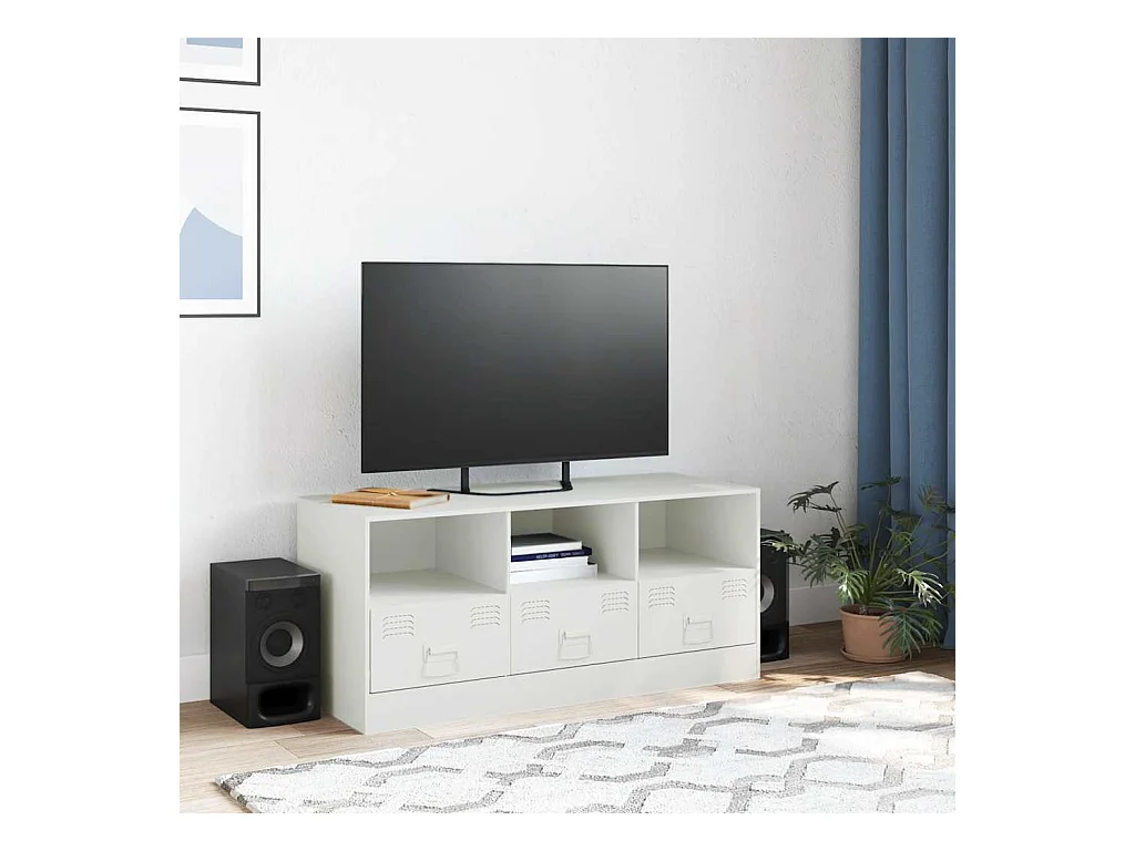 Mueble de TV | Mueble de salón acero blanco 100,5x39x43,5 cm