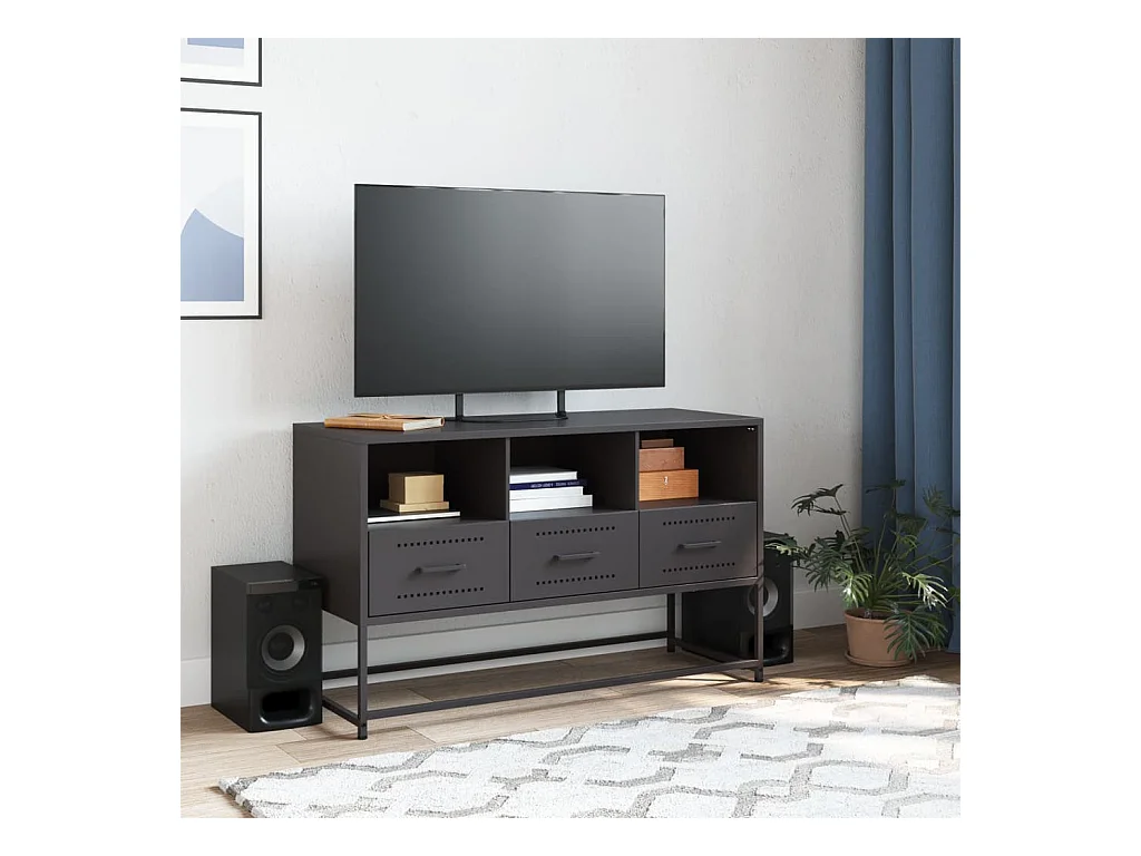 Mueble para TV | Gabinete de TV | Mueble de salón acero laminado en frío negro 100,5x39x60,5 cm