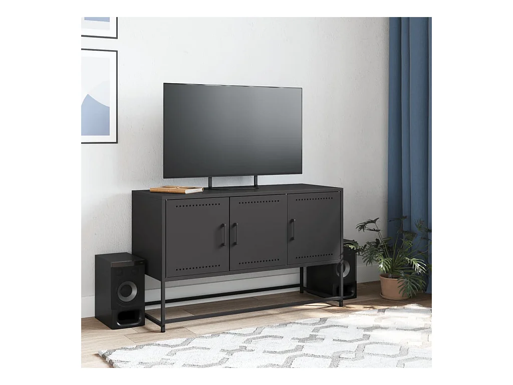 Mueble para TV | Gabinete de TV | Mueble de salón acero laminado en frío negro 100,5x39x60,5 cm