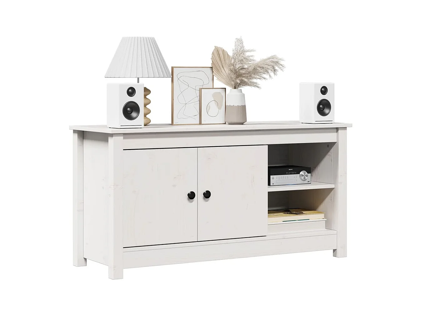 Mueble para TV | Gabinete de TV | Mueble de salón de madera maciza de pino blanco 103x36,5x52 cm