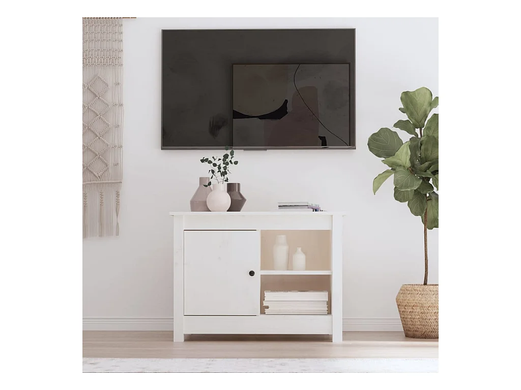 Mueble para TV | Gabinete de TV | Mueble de salón de madera maciza de pino blanco 79x35x52 cm